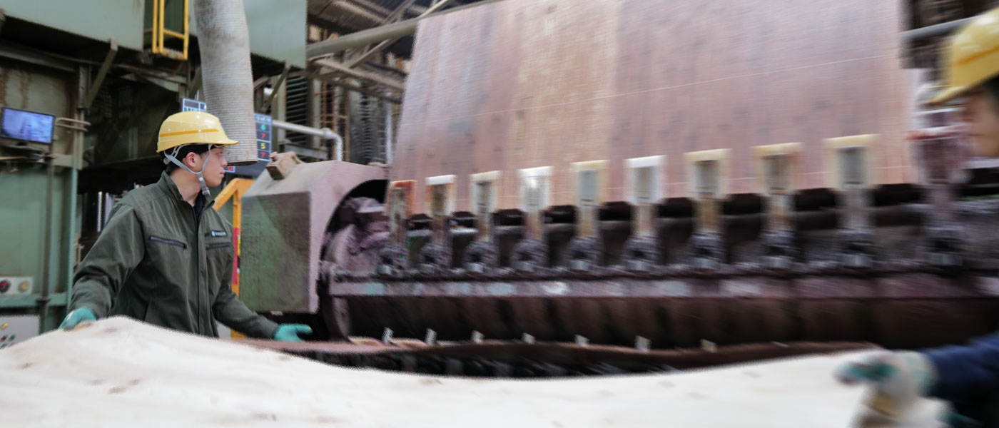 住宅建築に欠かせない「合板」という製品を製造し、国内30%のシェアを持つ株式会社日新を中心に、さまざまな関連業種の企業10数社で構成される日新グループについて説明します。